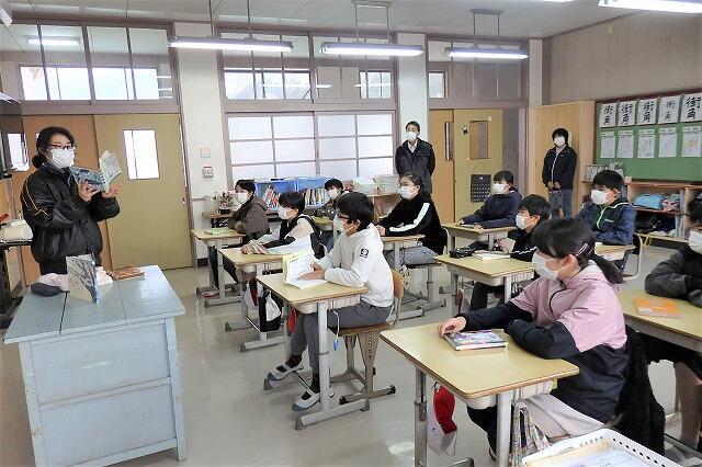 6年生の教室では、本の作りを確認したあとに読み聞かせをしてくださいました。