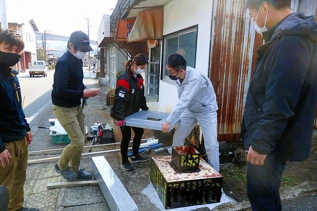 「村上石材店」社長(PTA会長)制作の標柱を 三役が 設置してくださいました。