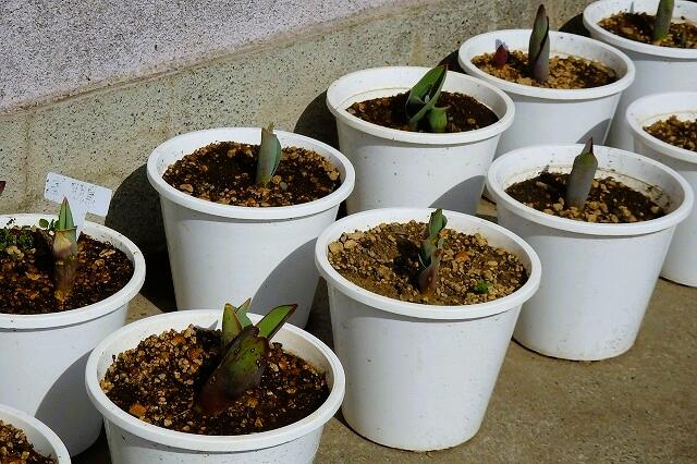 卒業式に向けて植えたチューリップの芽も伸びてきました。