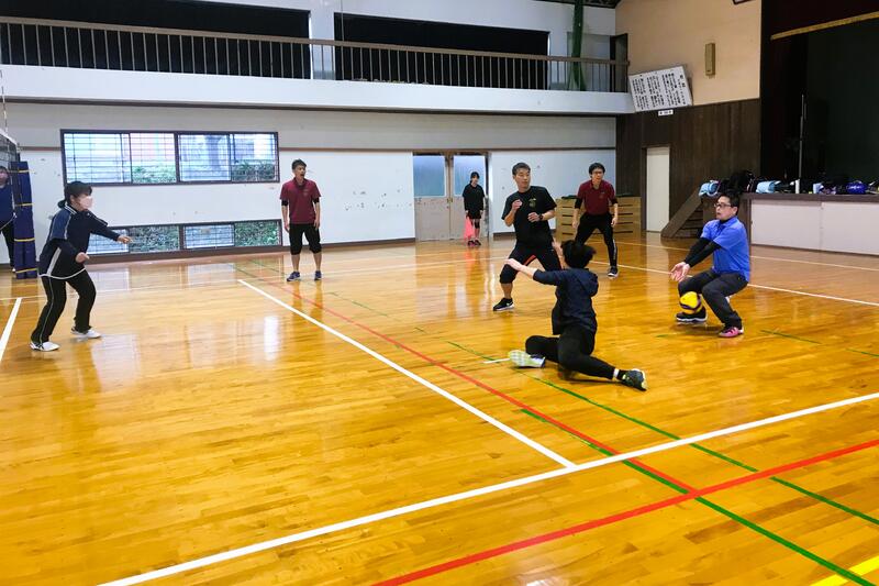 先生たちが、卒業する6年生の所属する「田原排球」と真剣なバレーボール対決をしました。