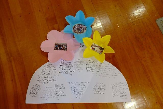 6年生から、各学年にメッセージのプレゼント!!メッセージの上には、きれいな花の飾りが付いています。