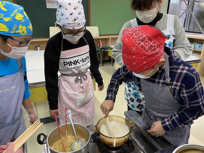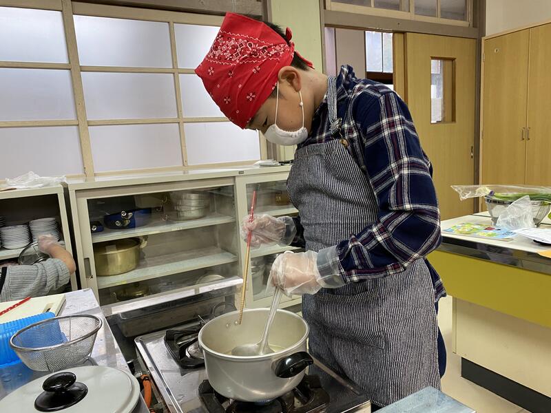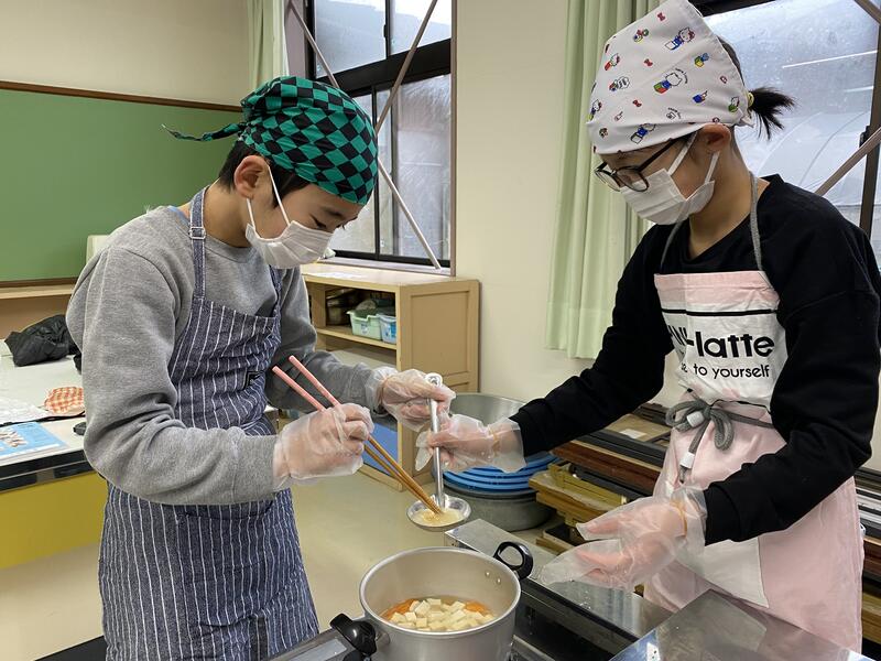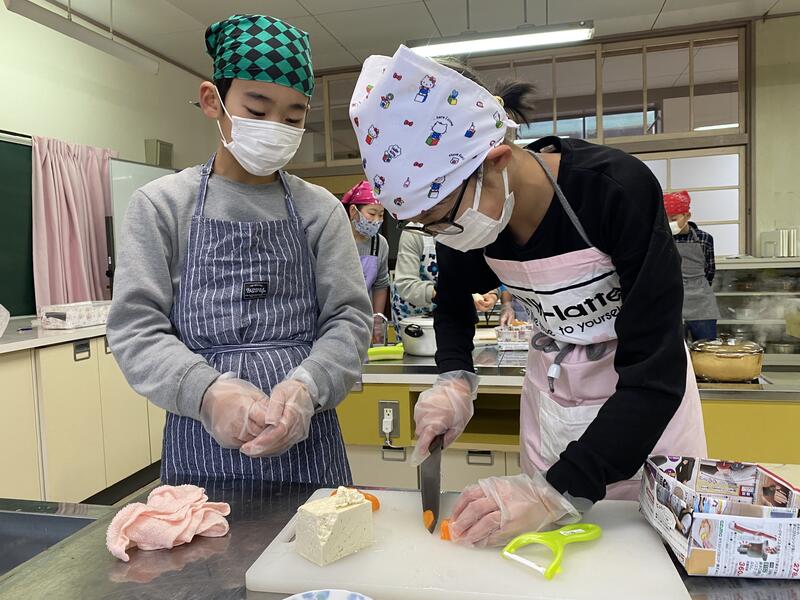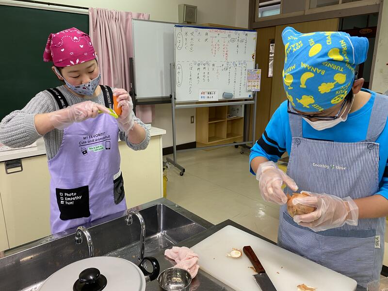 5年生が、感染症対策をとりながら、調理実習をしました。