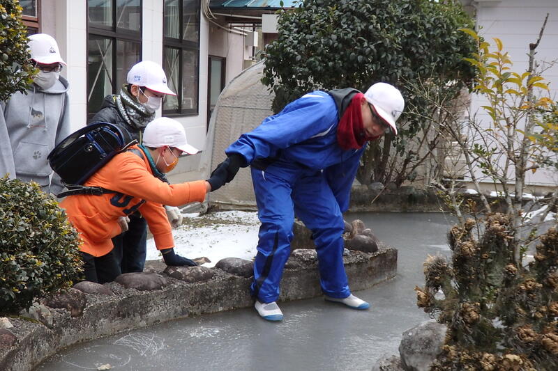 毎年、ひょうたん池が凍るので、田原っ子も楽しみにしています。
