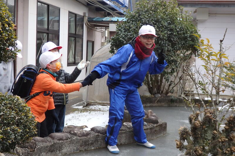 1年生と2年生も氷の上で、はいチーズ!! 眼鏡