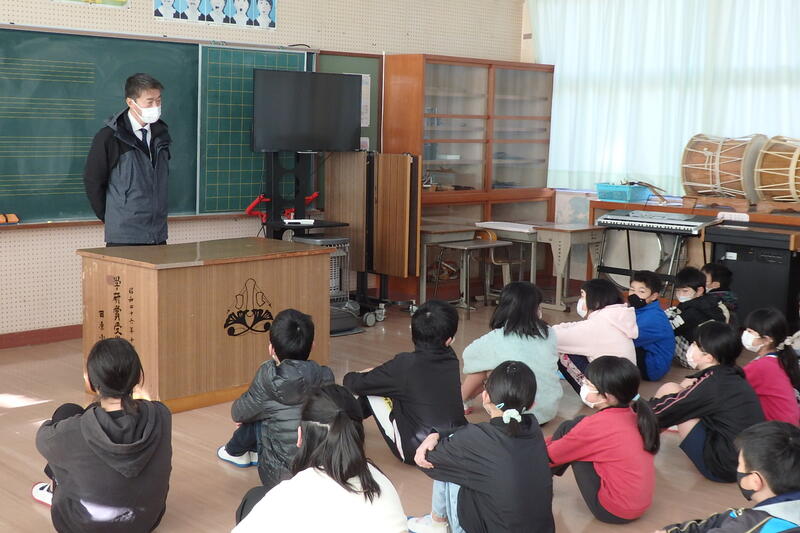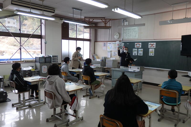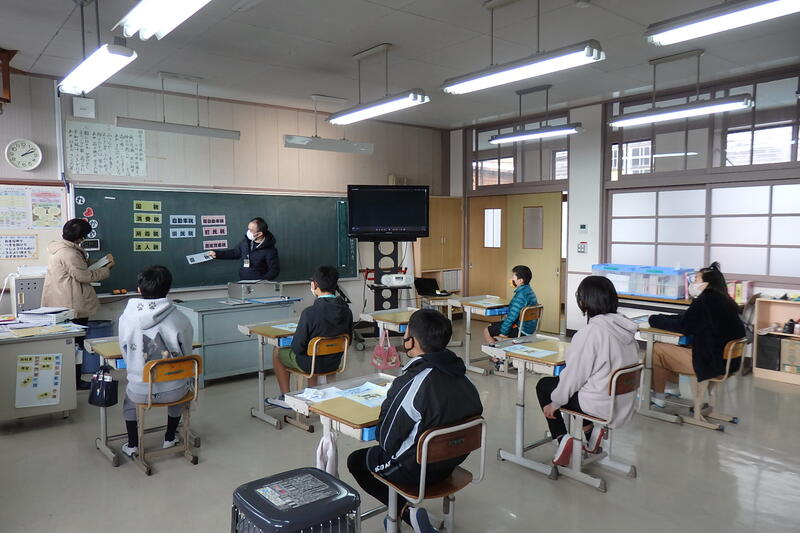 高千穂町役場の税務課から講師を招いて、6年生が税の仕組みについて学びました。