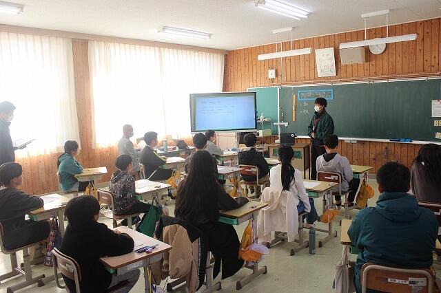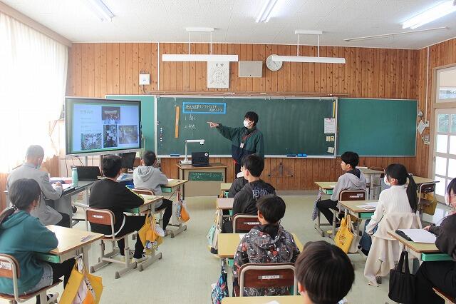 11月22日(土)にふれあい学習を実施しました。1校時は各学年フリー参観でした。2・3校時は、各学年ふれあい学習を行いました。1・2年生は、地域の方々を招いての「むかしの遊び体験」、3・4年生は高千穂町教育委員会の国民スポーツ大会室を招いての「国スポ・障スポの概要の説明とモルック体験」、5年生は、高千穂高校のジアスアカデミーを招いての「世界農業遺産について」、6年生は杉本商店社長の杉本和英様を招いてのキャリア教育を行いました。どの学年も講話を聞くことによって知識を深めたり、様々な体験を通して保護者とともに盛り上がったりすることができました。4校時は、1~4年生はフリー参観、5・6年生は、学校保健委員会を岩戸地区青少協の共催で実施しました。内容は、高千穂町教育委員会教育長戸敷二郎様を招いての講演で、演題は「私たちの望ましい生活習慣と睡眠について」でした。睡眠の学習やトレーニング、心に対する影響、メディアの目に対する影響、脳の発達と生活リズムや睡眠への影響、非認知能力の重要性について、分かりやすく、科学的に講話していただきました。今後の生活の仕方に生かしていきたいです。最後に、12時からバザーを開催しました。バザーの品目は、保護者や地域の方々が持ち寄ったもの、2学年が育てたサツマイモ、5学年が育てた米等が出品されました。1日を通して、大盛況でした。