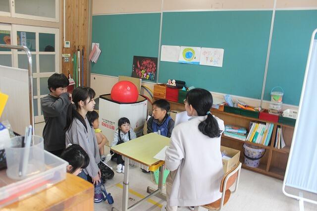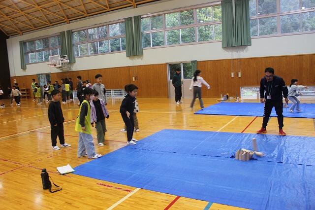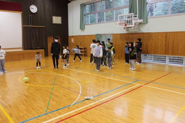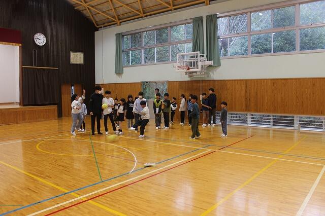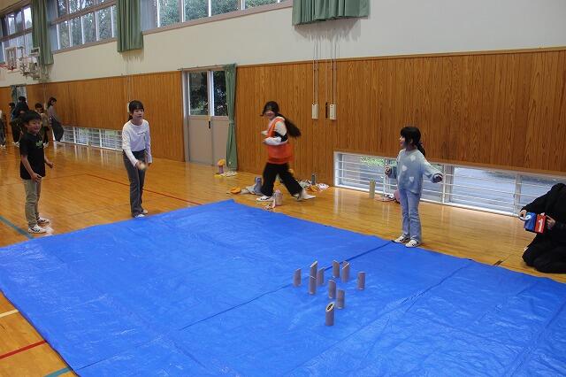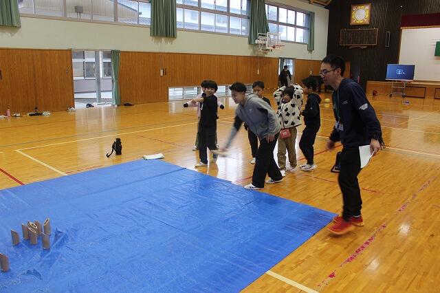 お別れ集会と同日に今年度卒業する6年生と親睦を深めるために、校内ウォークラリーを行いました。1~6年生の縦割りでチームを組んで、「シュートゲーム」「モルック」「本しりとりゲーム」「クイズ」に挑みました。チームのみんなで協力して高得点を目指して頑張りました。6年生と楽しい時間を過ごすことができました。
