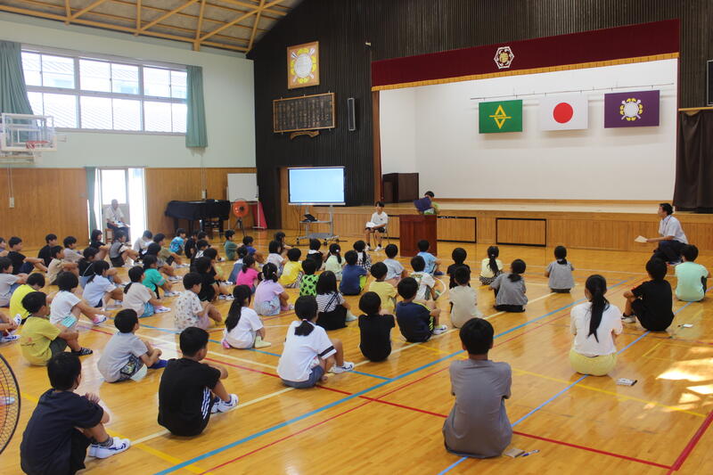 9月3日(火)の4時間目に地震対応の避難訓練を実施しました。児童全員が迅速に行動できたため、2分15秒で避難することができました。避難が終わった後に中武教諭から、避難するときに気をつけることについて再確認が行われました。最後に押方校長から、8月8日に起こった地震の話や防災の日の意味、登下校時に地震が起こったときに気をつけることについて話がありました。始業の日に、登下校時の防災について児童一人一人が考えていたので、話の内容をスムーズに理解することができました。
