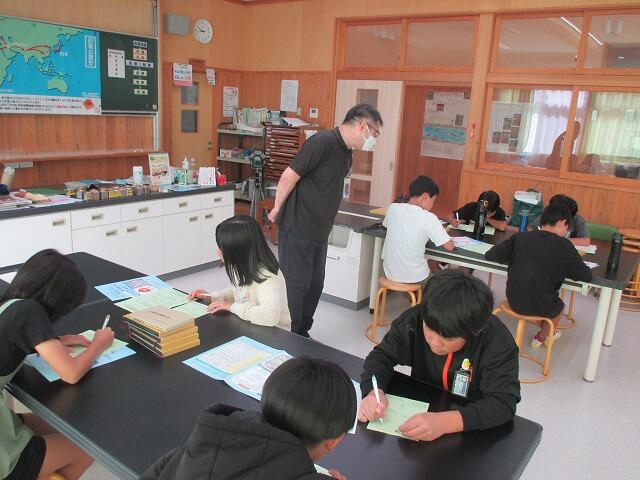 6月6日(金)に3年生が高千穂検定について学習しました。高千穂いまちゃんカンパニーの飯干 史子さんに来ていただき、高千穂検定の問題を実際に解きながら、高千穂のことについて知識を深めることができました。勉強を頑張って、高千穂検定に合格できるようにしたいです。