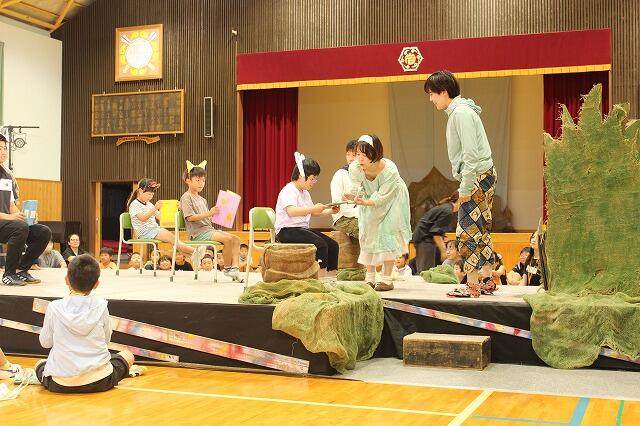 6月4日(水)に鑑賞教室を実施しました。三股町立文化会館を拠点にして活躍している「劇団こふく劇場」さんをお招きし、「野原の麦わら帽子」という劇を鑑賞しました。劇が始まる前に、各学年の教科書の一部を朗読してもらいました。劇には、児童や職員も参加して、とても楽しいひとときを過ごすことができました。