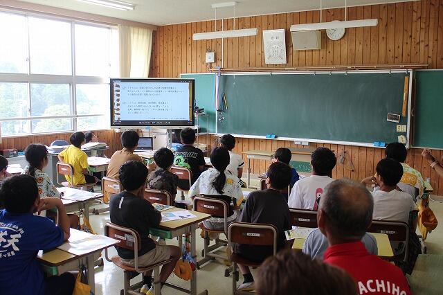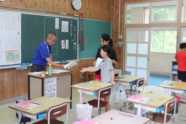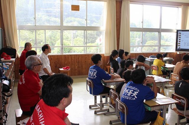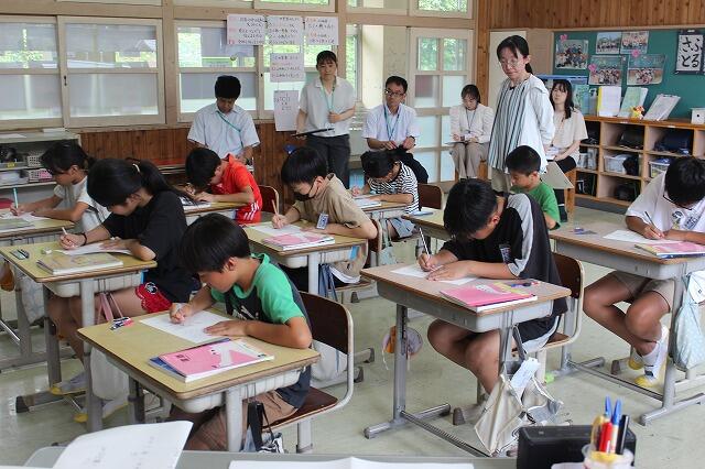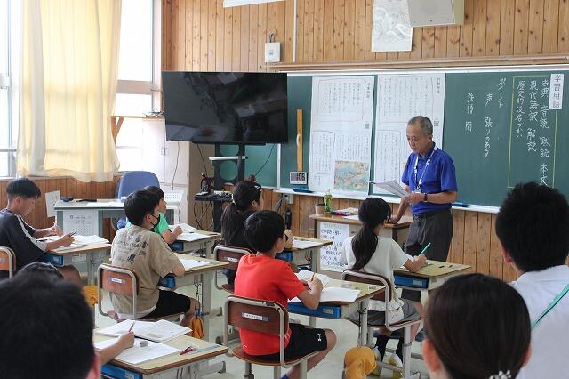 7月2日(火)5校時、前校長(現在は高千穂町教育委員会のキャリア教育コーディネーター)の押方彰一先生をお招きし、師範授業をしていただきました。5年生の古典学習で、「音読を楽しむ」という内容でした。きめ細かな教育技術と豊富な経験に基づいた見事な授業でした。一言で表現すると、「プロの教師の鍛える」授業。ポイントは、