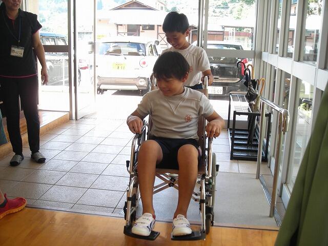 10月6日(月)に4年生で高齢者体験学習を行いました。高千穂町社会福祉協議会の木下さん、橋本さん、藤田さんに高齢者疑似体験や車椅子体験の指導をしていただきました。高齢者の方や体の不自由な方の心情を理解し、高齢者の方や体の不自由な方に出会ったときにどのような対応をすればよいか理解することができました。今後の生活に生かしていきたいです。