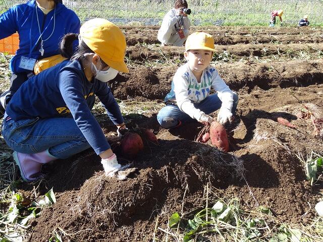 10月21日(木) 1・2年生が6月に苗を植え、9月には雑草取りもしたサツマイモの待ちに待った収穫を行いました。葉っぱはイモムシに食べられてほとんどなかったのですが、ほり出してみると大きくて立派なサツマイモがたくさんとれました。畑を提供してくださった工藤智功様を始め、これまでご協力いただいた保護者の皆様、ありがとうございました。