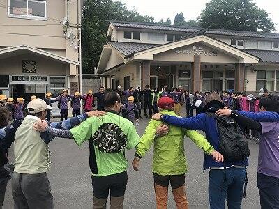 5月31日(金)地震で延期になった遠足が実施されました。6年生は恒例の古祖母登山です。7名の山の会の方々と役場総合制作室エコパーク担当の方も一緒に参加していただきました。出発式の様子です。