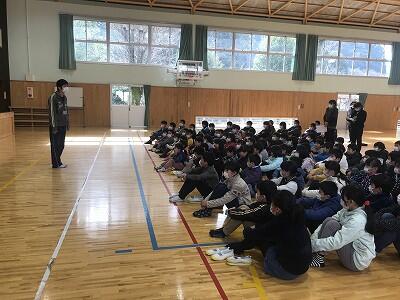 2月13日(水)火災の避難訓練が行われました。雨のため体育館への避難となりましたが、みんな真剣な態度で避難することができました。校長先生から一人でいる際の身の守り方についても話があり、『自分で自分の身を守ることの大切さ』を考えました。乾燥が続きます。火の取り扱いに注意していきましょう。