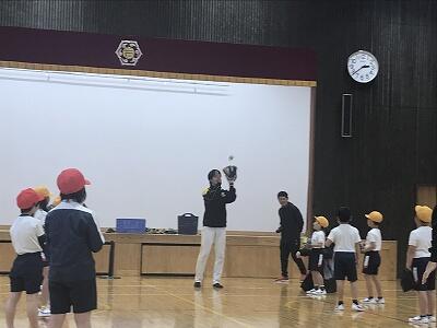 4月19日(金)今日、1年生の歓迎集会が行われました。各学年の出し物と1年生の自己紹介がありました。どの学年も工夫がされていて楽しかったです。その後、全校児童でクイズやゲームをして盛り上がりました。