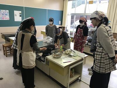2月22日(金)家庭教育学級が行われました。今日は給食試食会のあと、調理実習を行いました。手作りおやつ~大豆といりこの揚げ煮~をつくりました。
