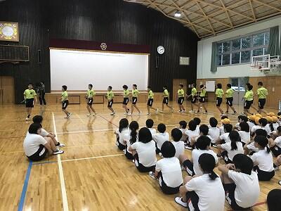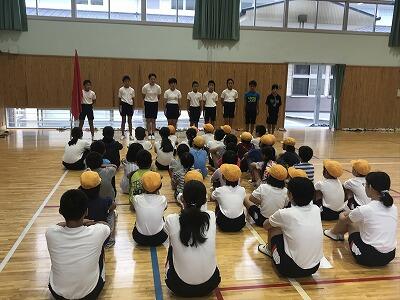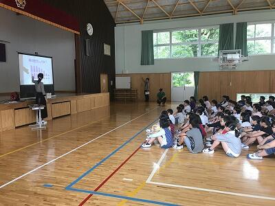 6月3日(月)げんきもりもりタイムが体育館で行われました。養護教諭の先生が岩戸小学校の歯科検診の結果から気をつけていきたいことについてお話がありました。また、実習が最後になった甲斐先生から全校児童にお別れのあいさつもありました。