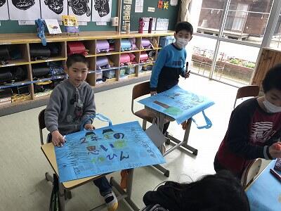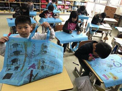 2年生が作品バッグに絵を描きました!