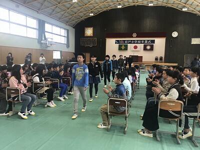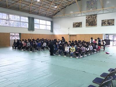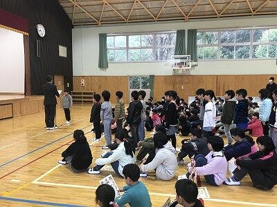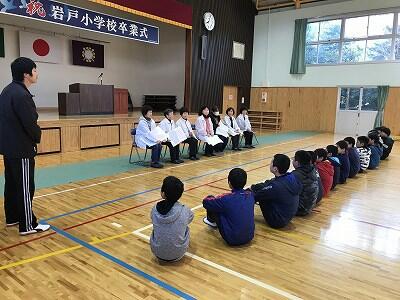 3月1日(金)お別れ集会が体育館で行われました。岩戸っ子委員会の司会でサイレントゲームやじゃんけんボーリングを行いました。その後、6年生が各学年と対決ゲームをしてくれました。工夫があってどの学年にも楽しめるものになっていました。さすが6年生ですと思わせる内容でした。