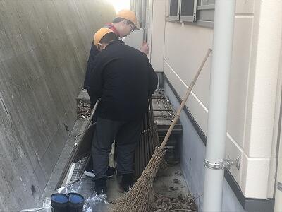 8月24日(土)高千穂地区建設業協会青年部による奉仕作業をしていただきました。高くて普段は手がつけられていなかった屋根の雨樋をきれいにしていただきました。