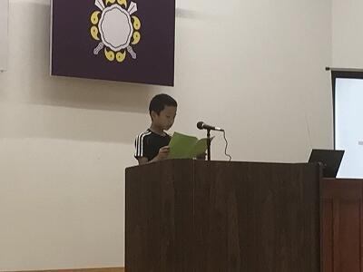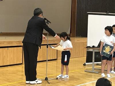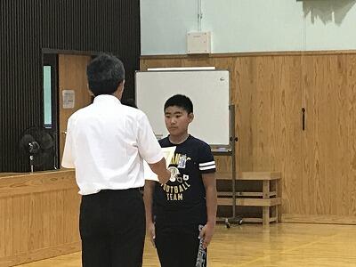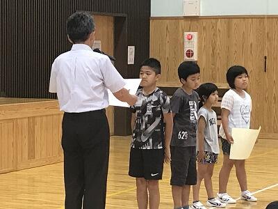 7月19日(金)令和元年度第1学期の終業式が行われました。最初に3年生と5年生の作文発表がありました。その後、校長先生から1学期を振り返ってお話があり、校歌斉唱で1学期を締めくくりました。そして学習部・生徒指導部・保健体育部の先生方から夏休みの過ごし方についてお話がありました。最後に多読賞の表彰がありました。