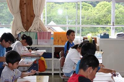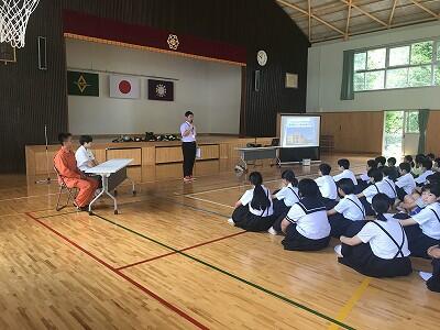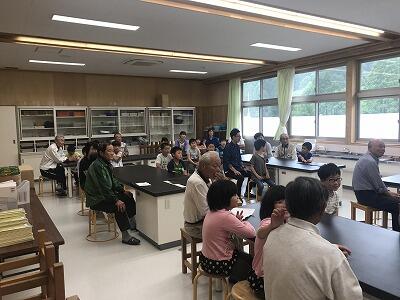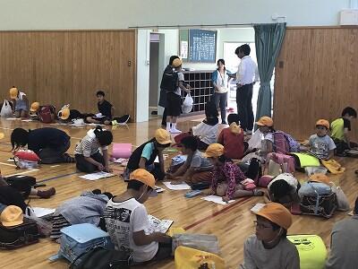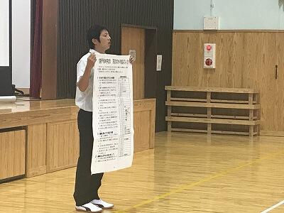 7月24日(水)に地区別学習会が行われました。岩戸小学校出身の中学生も参加して地区別に教え合い学習を行いました。また。今年は東岸寺出身で現在西臼杵広域行政組合消防本部職員として活躍されている佐藤光洋様に講話をしていただきました。