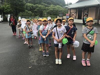 7月11日(木)今日、1・2年生はイモ畑見学と忠霊塔に虫取りに行きました!曇りでしたが子ども達は元気いっぱいに学校を出発しました!