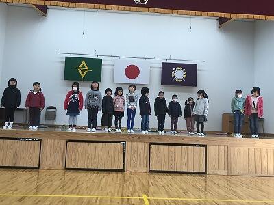 3月4日(月)全校朝会が行われました。校長先生が次の学年に向けて準備をしていきましょうとお話をされました。その後、表彰が行われ、町の駅伝大会や動物の作文コンクール、造形作品展、長縄大会、空手大会等の表彰が行われました。