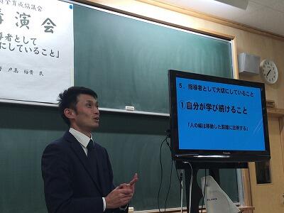 14日岩戸小学校で岩戸地域青少年健全育成協議会教育講演会が行われました。高千穂高校の野球部監督である戸髙裕貴先生にご講演をいただきました。『指導者として大切にしていること』についてわかりやすく実例をあげながら話をしていただきました。高千穂高校野球部のファンが増えた講演会になりました。