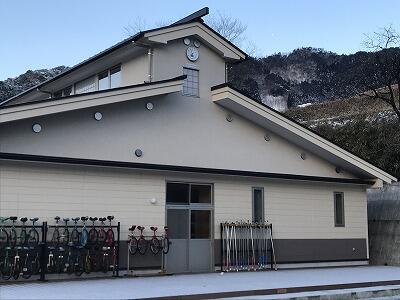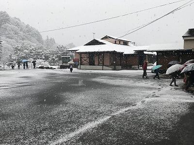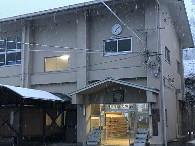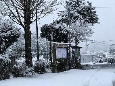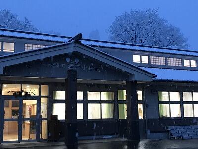 今朝は朝から雪が降っていました。岩戸小学校の雪景色です。
