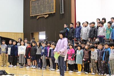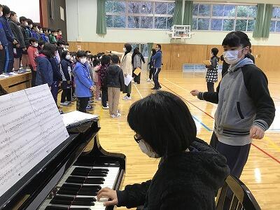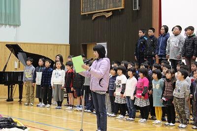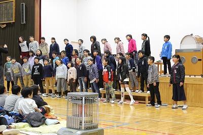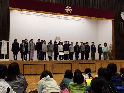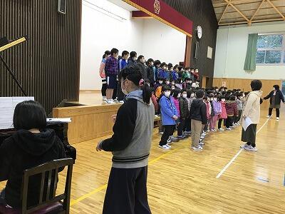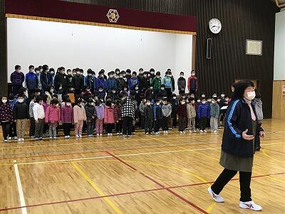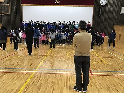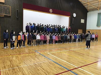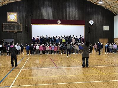 今日は全校合唱練習の2回目でした。インフルエンザの流行をおさえるため全員マスク着用でしたが、大きな声が出ていました。本番まで1週間、各学級での練習を約束して終わりました。2月4日(日)の学習発表会を楽しみにしておいてください。