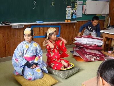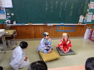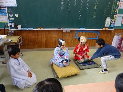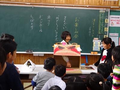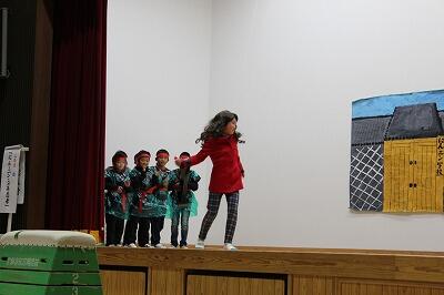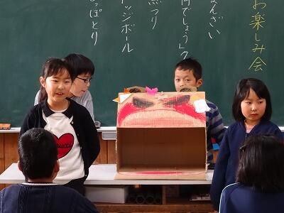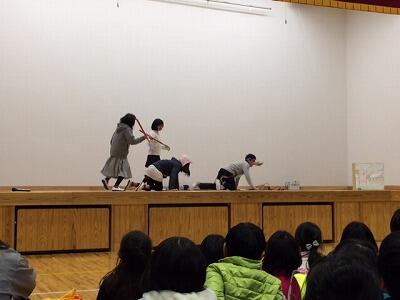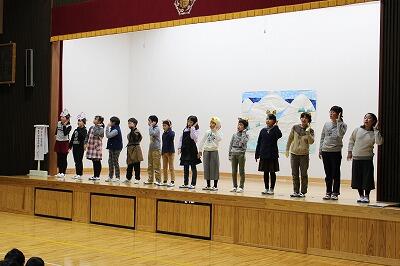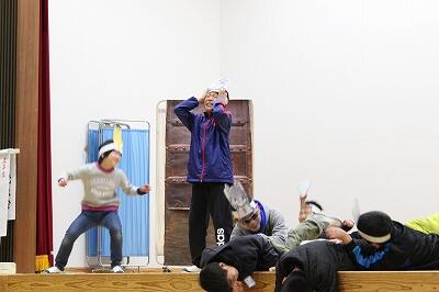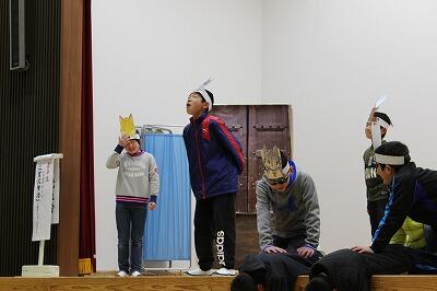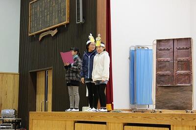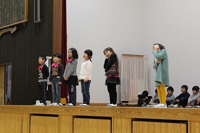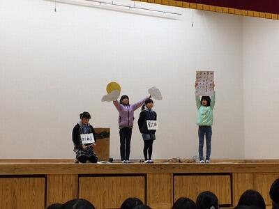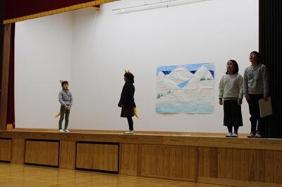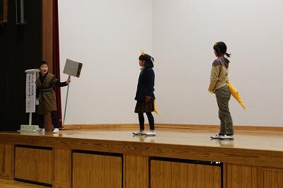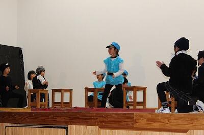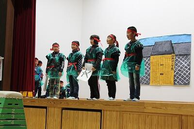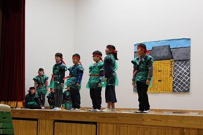 4年生は14名で方言劇「岩戸の子きつね」を演じました。高千穂弁満載の劇になりました。長いセリフもバッチリでした。劇の様子です。
