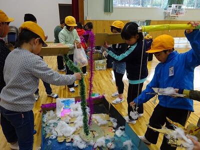 5年生は、算数の時間に立方体を作りました。1辺1mの立方体です。作ってみると大きさが実感できます。体験する算数の時間です。