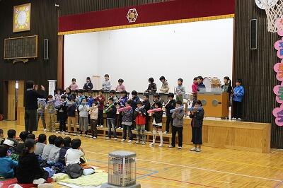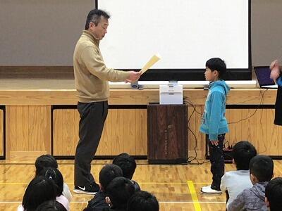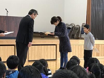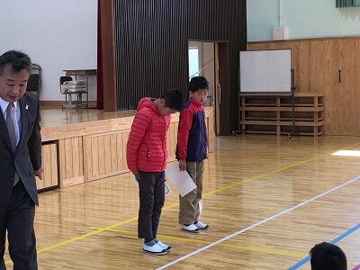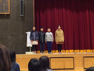 本日、2学期を締めくくる終業式が行われました。代表児童2名が作文を発表をした後に、校長先生の話がありました。2学期の成長は会釈からも伝わります。新しい年を迎えます。気持ちのよいスタートを迎えられるようにしましょうというお話でした。その後表彰が行われ、多くの児童が表彰されました。本日の様子を紹介します。