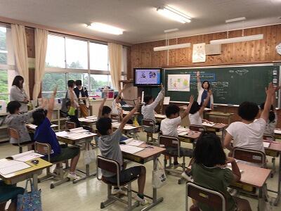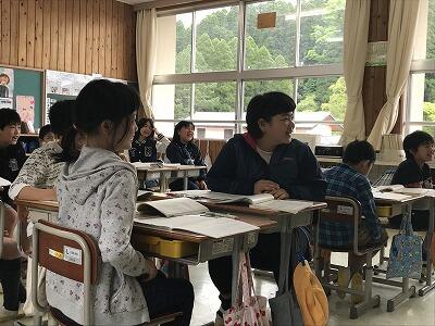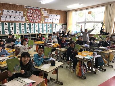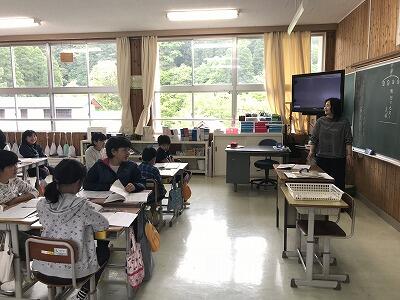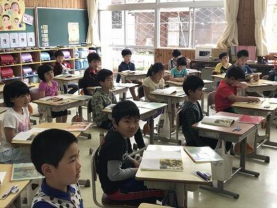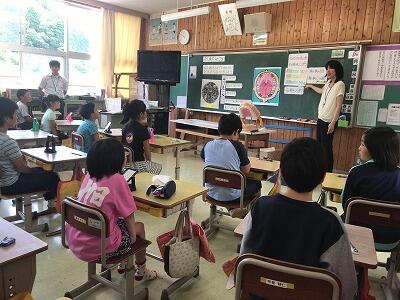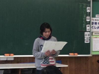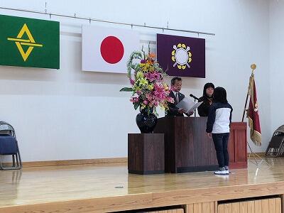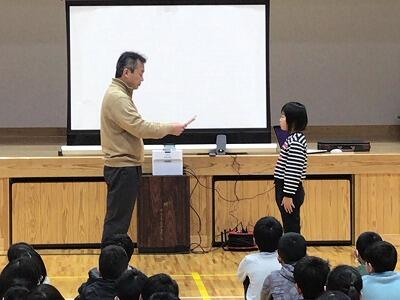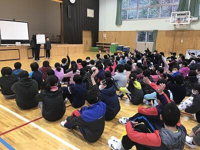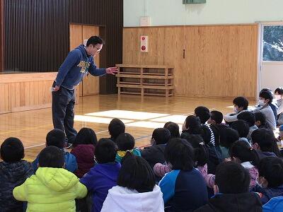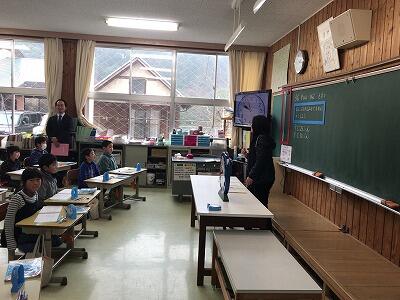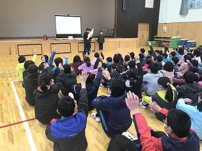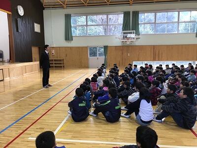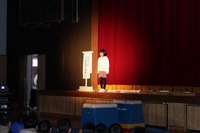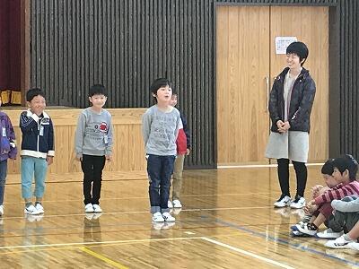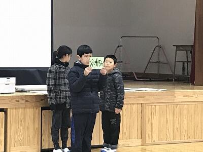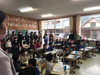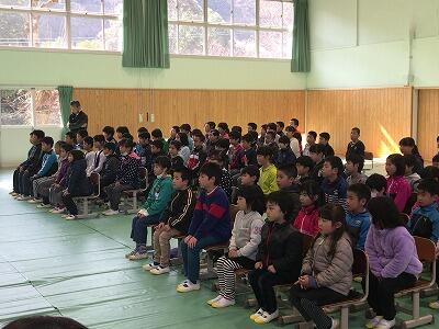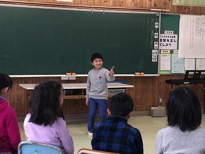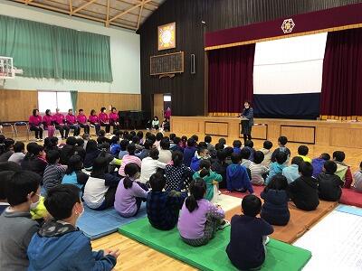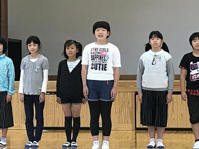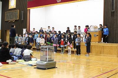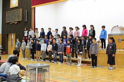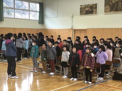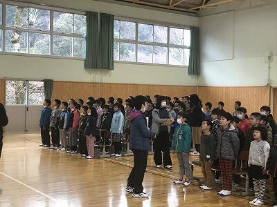 西臼杵の小学校の学校紹介の様子です。大きな声が響き渡りました。