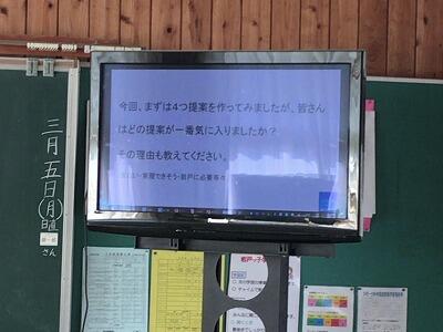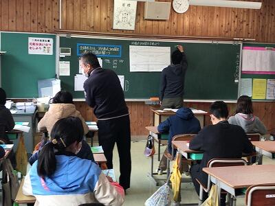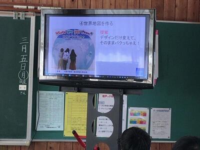本日、6年生の総合的な学習の時間の授業でまちづくりの授業を行いました。高千穂町役場の建設課地域おこし協力隊の三ッ野寛人さんに来ていただき、先週6年生が提案したアイデアから4つのプランを6年生に話してもらいました。子どもたちも興味深く授業に取り組んでいました。