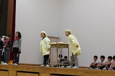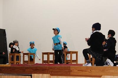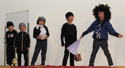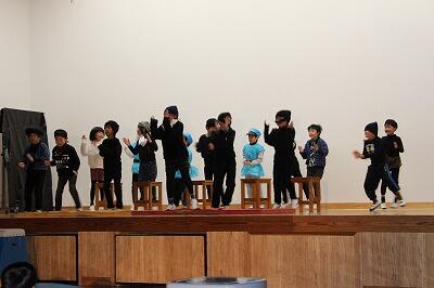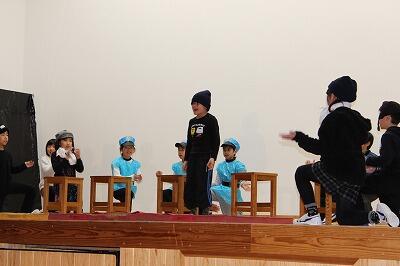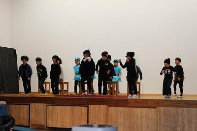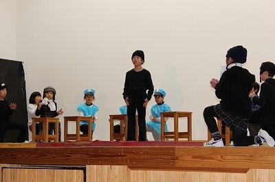 2年生は16名で劇「どろぼう学校」を演じました。元気のよい2年生らしくステージを所狭しと跳び回りました。劇の様子をごらん下さい。