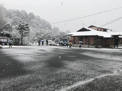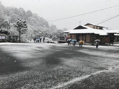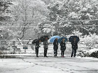 昨夜から降り出した雪で、校舎の周りは雪景色になりました。子どもたちは雪の中登校してきました。朝のボランティアも頑張ってくれています。