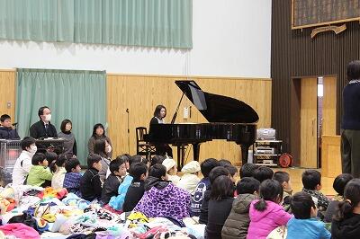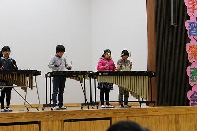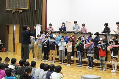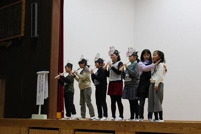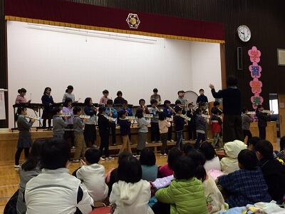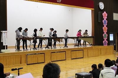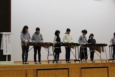 音楽クラブのみなさんは合奏「さよなら」「よろこびの歌」「剣の舞」を演奏してくれました。少ない人数でしたが、迫力一杯の演奏でした。