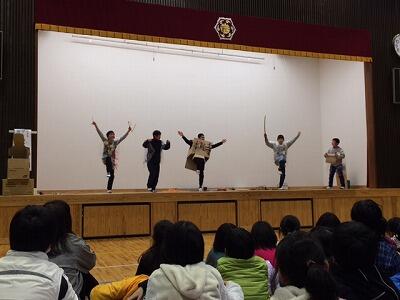 5年生は16名で劇「宮沢賢治」~岩戸小バージョン~を演じました。国語の時間に学習した「注文の多い料理店」を岩戸バージョンにして演じていました。楽しい劇になりました。