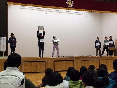 6年生は26名でプレゼンテーション「岩戸をよりよい町にするために」と劇「日本の歴史」を発表しました。6年生らしく学んだことをわかりやすく発表していました。
