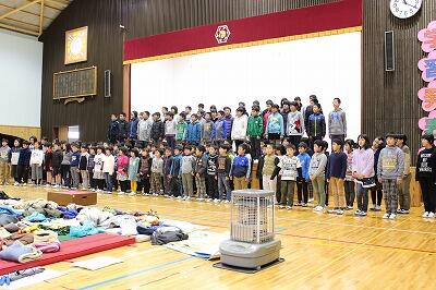 今日は、火災による避難訓練が行われました。運動場の状態が悪く、体育館への避難になりましたが、みんな真剣に取り組んでいました。その後、火の取り扱いについての話がありました。