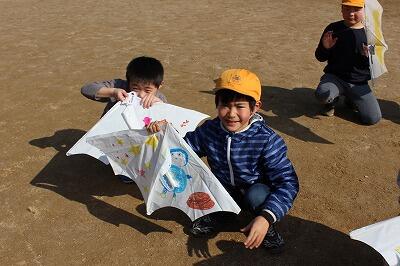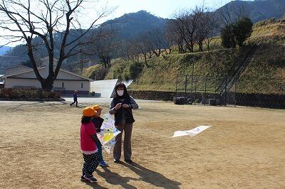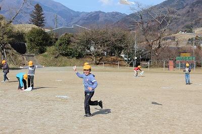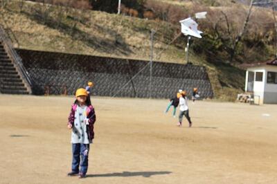 今日、1年生は自分たちが作った凧をあげました。昔は冬の風物詩でしたがなかなか目にすることも少なくなった凧揚げです。今日は運動場を元気よく走り回る姿が見られました。