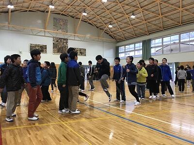 むかばきでの体験プログラムが始まりました。最初はアイスブレーキングです。3日間一緒に過ごす友達との交流の時間です。