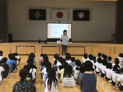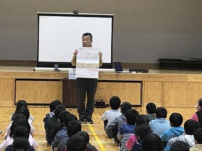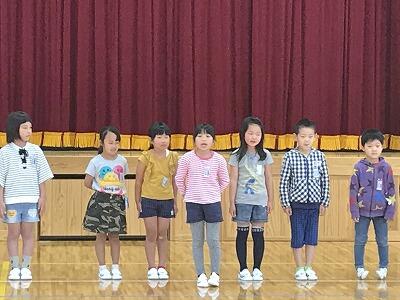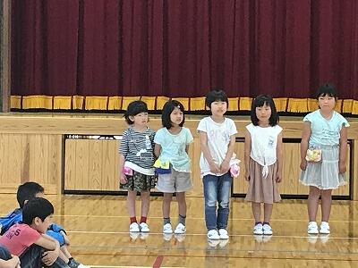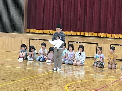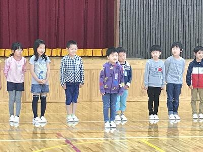 今日は、全校朝会が行われました。連休中の全校朝会となりましたが、子どもたちの元気な声に元気をもらいました。校長先生と「命を大切にする」「勉強を頑張る」「人に優しくする」という3つの約束をしました。そして、連休中の過ごし方についてお話がありました。楽しいゴールデンウィークにしましょう。