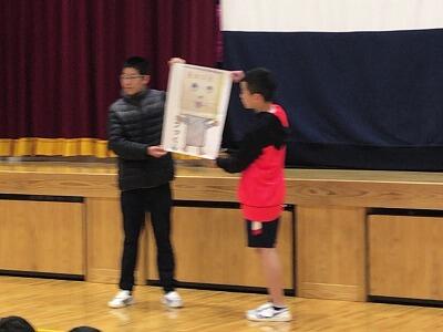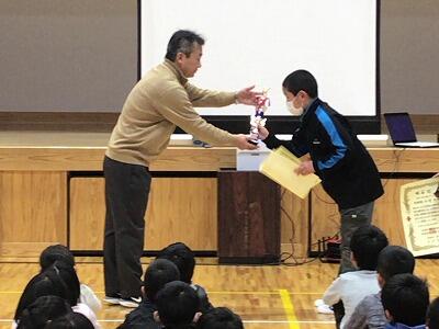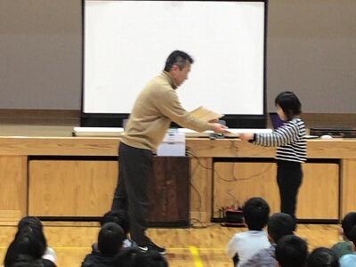 本日、平成29年度最後の全校朝会が行われました。校長先生がこの1年間の子どもたちの頑張りをまとめた映像で紹介されました。3月のまとめの期間をていねいに過ごそうとお話しになりました。その後、表彰式が行われました。