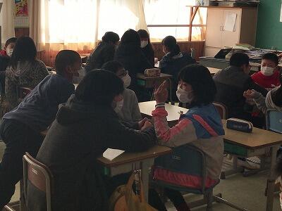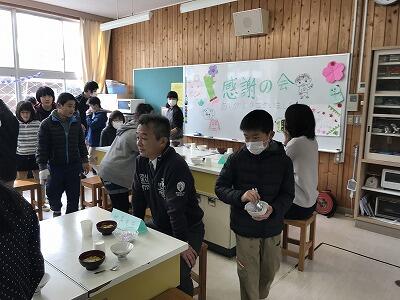 今日は、6年生が毎朝お世話になっている、岩戸小学校見守り隊の方々に学校に来ていただき、感謝の会を開きました。クイズとゲームをした後、食事会を開きました。