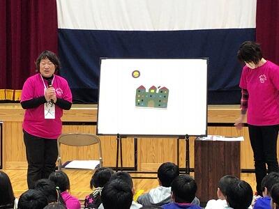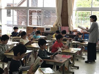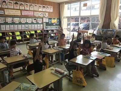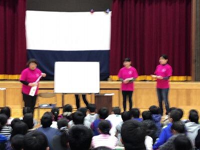 本日3校時に5年生は、人権の花に関する授業を行いました。6名の講師の方々に来ていただき、紙芝居『白い魚とサメの子』と人権の歌の授業を行っていただきました。楽しい時間はあっという間に過ぎました。
