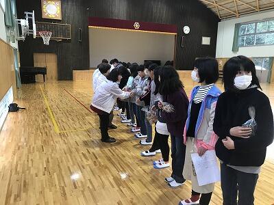 今日は、卒業する6年生に更正保護女性会岩戸支部の皆様からサブバックのプレゼントがありました。心温まる贈呈式になりました。大切に使わせていただきます。ありがとうございました。